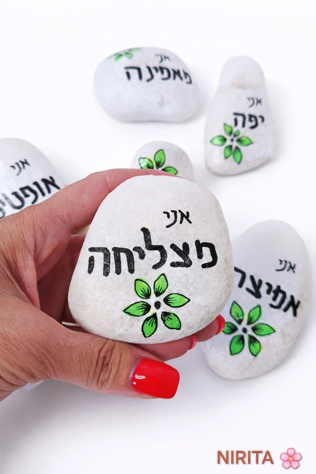 חלוקי נחל בעבודת יד עם משפטי העצמה נשית