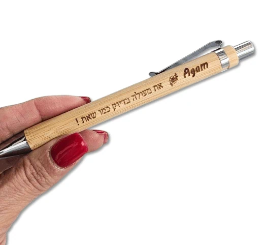 🖊️ עט במבוק איכותי חריטת לייזר – עם כיתוב אישי של שם + משפט לבחירה
