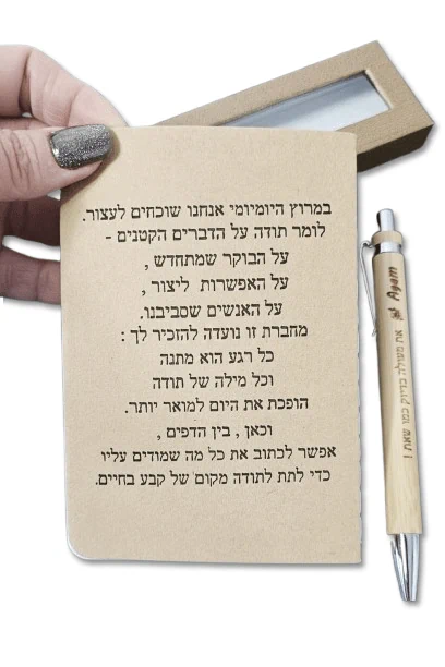 📜 "מחברת התודות שלי " – מחברת קטנה גודל A7 (10 ס"מ * 7 ס"מ) עם חריטת לייזר לתזכורת קטנה לחיים.